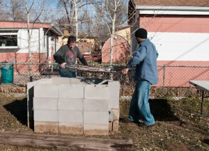 For the grate, I used an aluminum chain link fence, reinforced with a little rebar. It was tough to track down non-galvanized fencing, but you should never cook on galvanized metal–the zinc will poison you. DO NOT USE GALVANIZED STEEL!